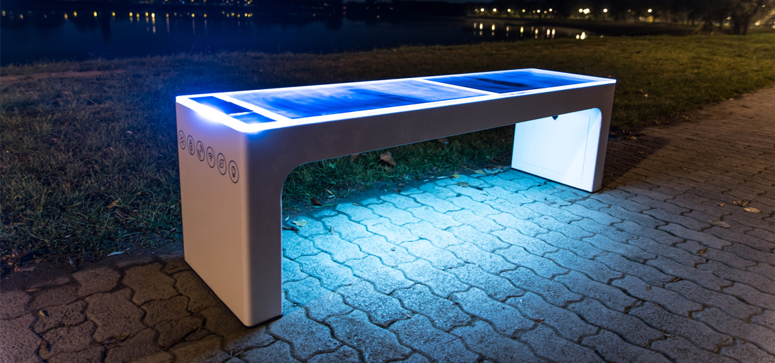 Solar Benches are the perfect blend of comfort and technology. These smart benches offer a place to relax while providing solar-powered charging stations for your devices.